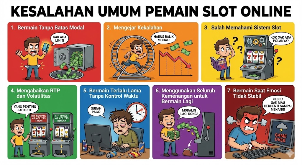 Banyak pemain bermain slot tanpa persiapan dan pemahaman dasar. Faktor emosi, ekspektasi berlebihan, serta kurangnya manajemen modal menjadi penyebab utama kesalahan berulang. Tanpa disadari, kebiasaan kecil yang salah dapat berdampak besar dalam jangka panjang.