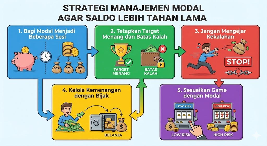 Dengan manajemen modal yang baik, pemain dapat bermain lebih tenang, terkontrol, dan realistis.
